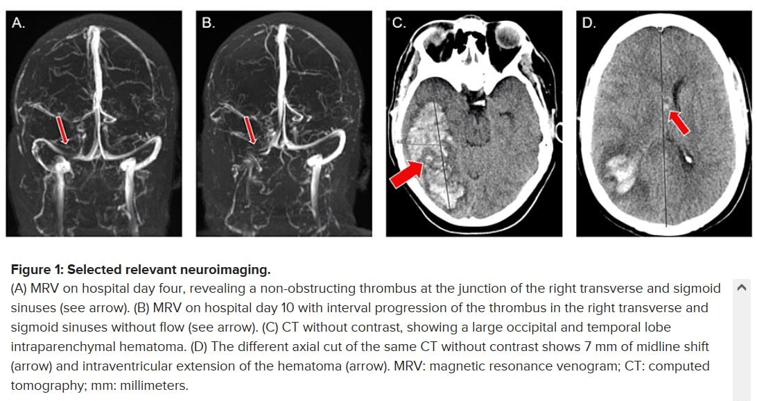 2. Superior sagittal, transverse & sigmoid sinus thrombosis after administration after Covid Vaccination (AstraZeneca): https://www.sciencedirect.com/science/article/pii/S0344033822000395?via%3Dihub#fig0030