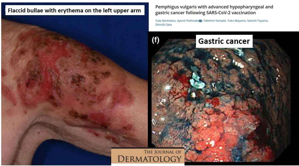 8. Pemphigus vulgaris with advanced hypopharyngeal and gastric cancer (!) following SARS-CoV-2 vaccination: