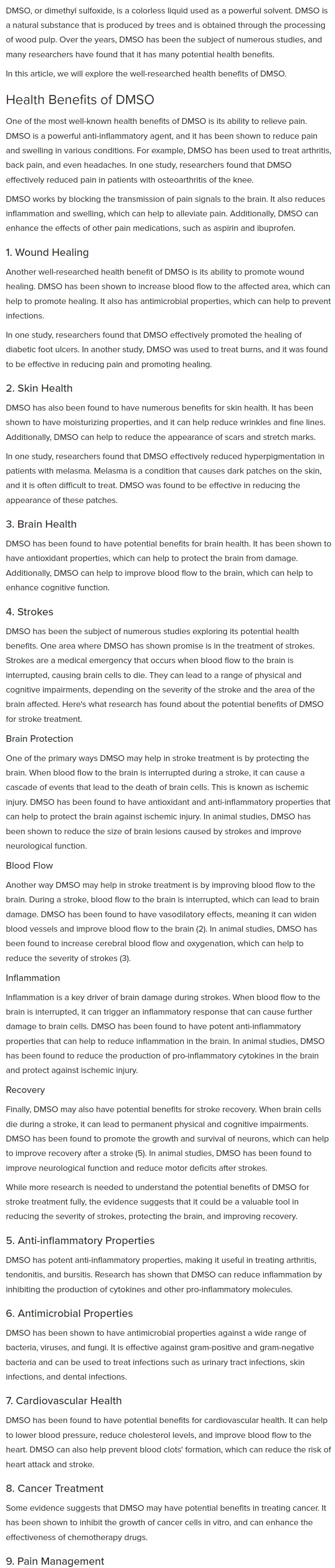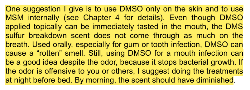 I use DMSO often. With family and my clients. It’s amazing stuff. The DMSO Handbook is also a great resource (https://a.co/d/dMmZRpy)