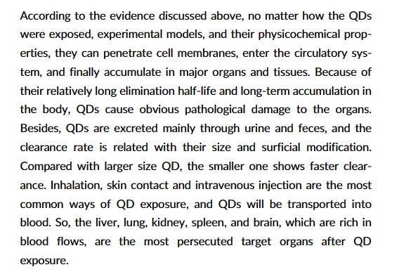 https://analyticalsciencejournals.onlinelibrary.wiley.com/doi/epdf/10.1002/jat.4180 Toxicity of quantum dots on target organs and immune system