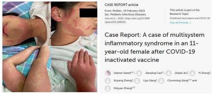 https://www.frontiersin.org/articles/10.3389/fped.2023.1068301/full Frontiers | Case Report: A case of multisystem inflammatory syndrome in an 11-year-old female after COVID-19 inactivated vaccine (frontiersin.org)
